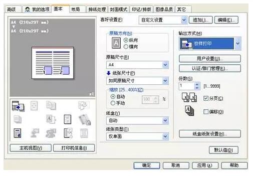 单击(基本)-选择(输出方式)-选择(校样打印)