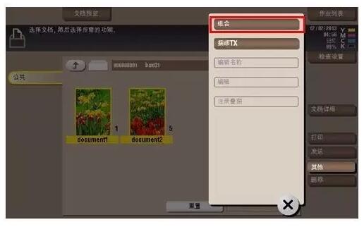 按控制面板上的(用户Box) - 选择(打印设置)- 选择(打印),然后选择您要打印的文档 - 选择(合并设置)并设定打印顺序
