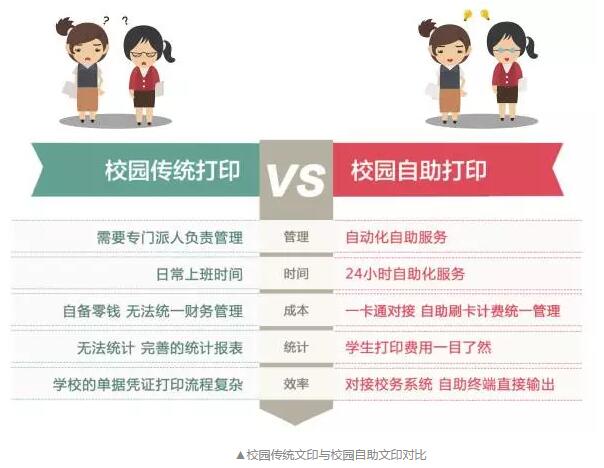 大家摩肩接踵地挤在十几平米的文印店里打印简历,效率当然低啦~有些聪明的学校方早就已经在图书馆、教学楼、宿舍楼多点布局,统一放置了小柯家的数码复合机,且导入了小柯家的CPMS校园自助文印解决方案,童靴们可就近选择复合机刷卡输出,无需人工现场管理,管理员在后台即可“指点江山”,不仅学校节约了成本,打印效率也是up up up!简历之路走得好easy~