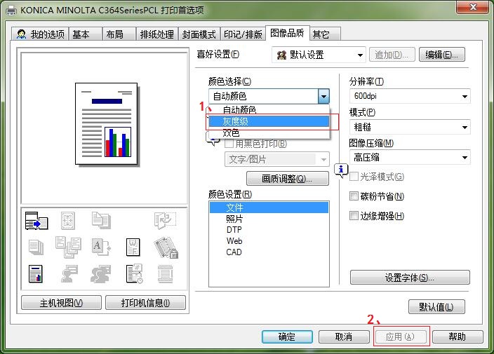第三步,进入到以下界面,然后选择“图像品质” — 颜色选择“1、灰度级” — “2、应用”