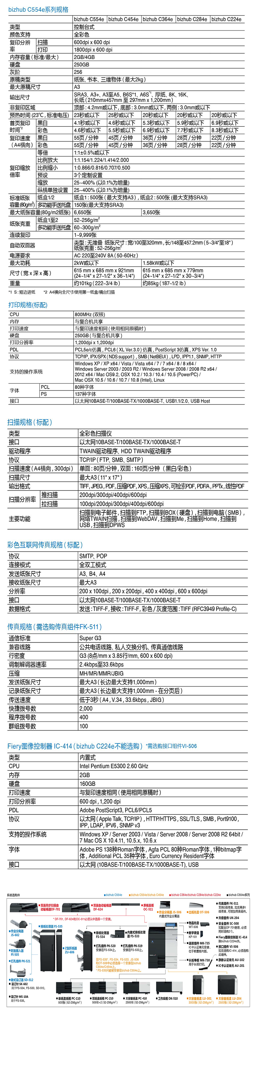 Bizhub C554e租赁正价套餐:参考套餐1:1600元/月包10000张/月黑白,1200张/月彩色, 超印黑白0.06元/张,彩色0.8元/张,押金6000元.具体面议备注:租期3年,本套餐已包含除纸张外的其它所有零配件耗材、服务、维修等费用.机型适用办公环境:最大月印量1万张以上 印量大、速度要求高。产品示意图可能包含部分选购件