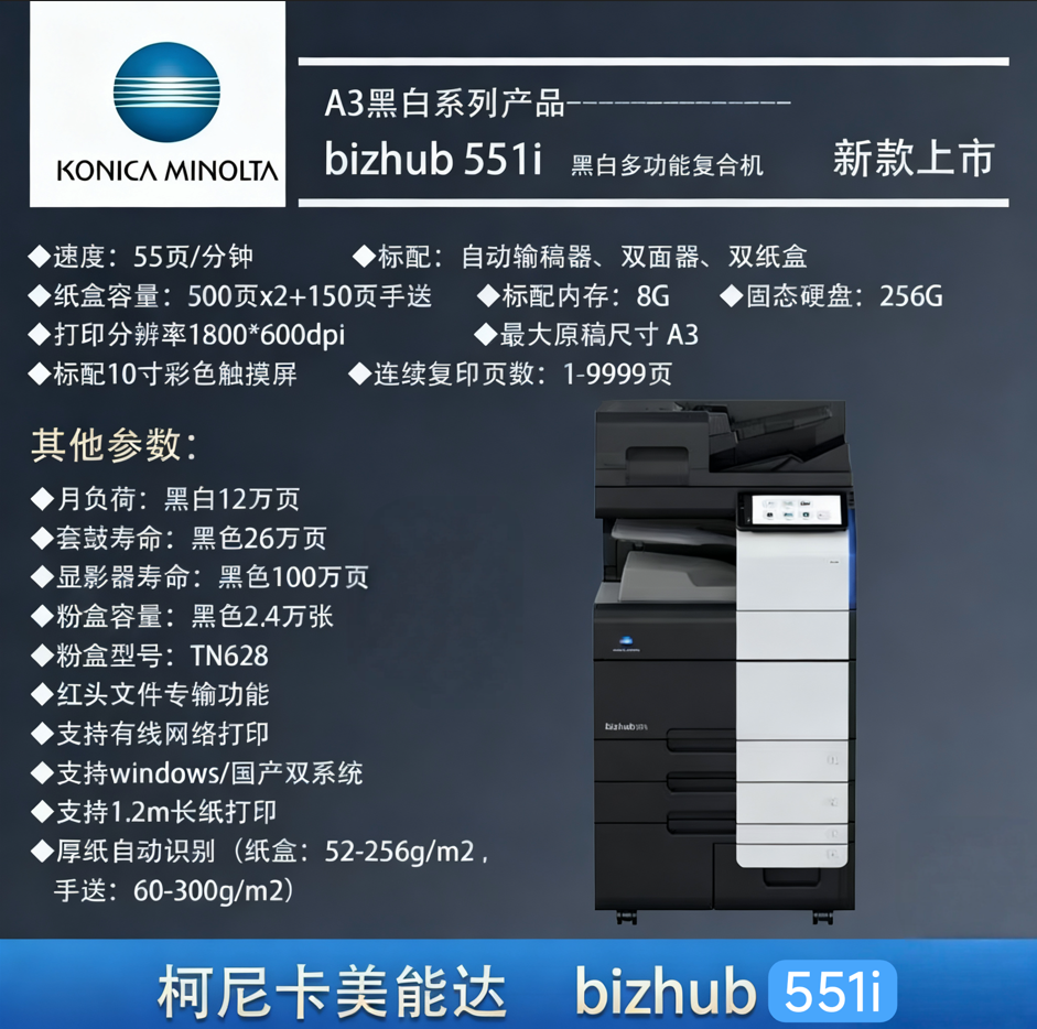 柯尼卡美能达bizhub 551i A3黑白多功能复合机
